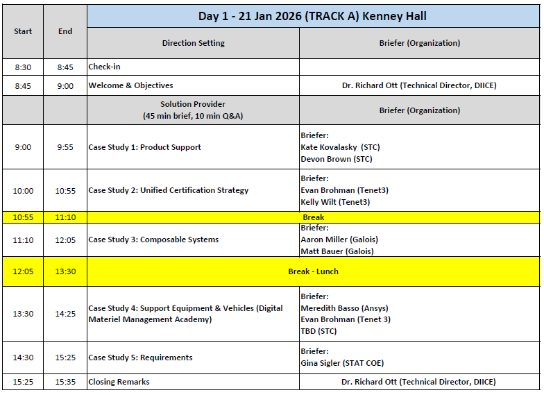Day 1 will kick off with welcome remarks from DIICE Director, Col Ian Slazinik.