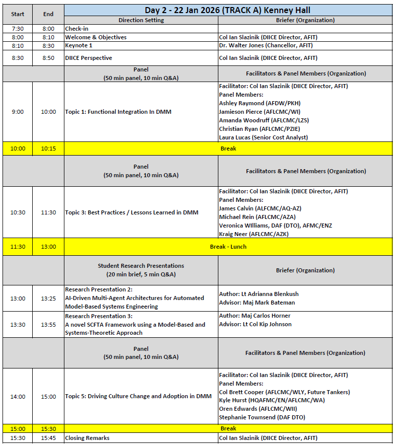 View full agenda below or follow link to download: AFIT 2nd annual DMM Symposium Agenda (v5).pdf