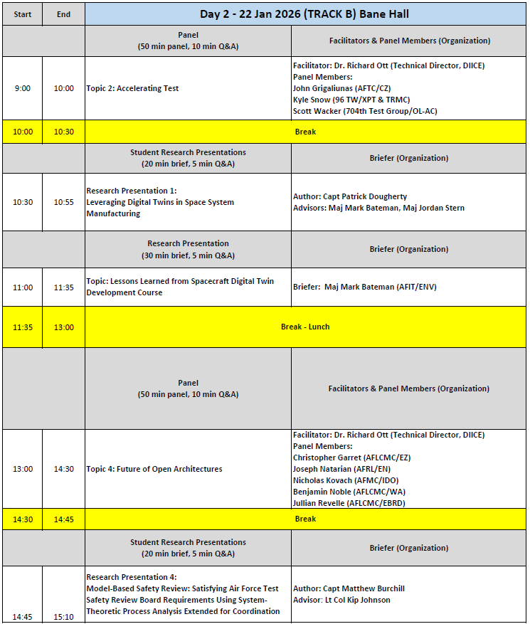 Day 2 begins with a keynote address from Dr. Walter Jones, Chancellor of AFIT.